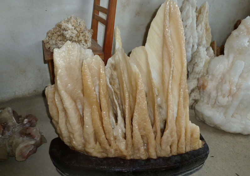7.鐘乳石:又名乳管石,為一種洞穴巖石。造形奇特,藻類易于附著,可人工鑿景穿洞。因其含較多的石灰質,故須先在水中浸泡數日后方可用于水族箱中置景,由于質地松脆,含堿性較重,往往影響pH值的變化,適宜于喜弱堿性水質的觀賞魚。該石產于廣西廣東河北承德等地的巖石洞穴中。