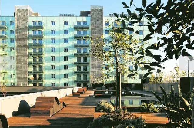 項(xiàng)目是關(guān)于住宅綜合體一層露臺(tái)和三層屋頂花園的景觀設(shè)計(jì),為私家院落。設(shè)計(jì)師將二層的屋頂花園設(shè)計(jì)為自我維護(hù)的花園系統(tǒng),激發(fā)其與周?chē)h(huán)境的融合,促進(jìn)公共空間的形成。整個(gè)綜合體的布局充滿線性和幾何特征。一層露臺(tái),幾棟建筑物圍合出一個(gè)中央空間。中央空間以石板鋪裝,強(qiáng)調(diào)其與建筑物的聯(lián)系,突顯入口空間,同時(shí)還設(shè)計(jì)了一個(gè)休閑空間,由抬升的種植池和水景小品組成。水景小品以拋光的混凝土墻為中心,富于水體流動(dòng)的光影效果。這面幕墻起到部分保護(hù)中央露臺(tái)花園的作用。三層屋頂花園分割為兩個(gè)功能迥異、相互獨(dú)立卻又相連的空間:南部區(qū)域?yàn)橐粋€(gè)日光浴場(chǎng)所,顯眼地設(shè)置了游泳池;北部區(qū)域?yàn)橐粋€(gè)休閑花園,點(diǎn)綴著游樂(lè)場(chǎng)元素。設(shè)計(jì)的連續(xù)性源自對(duì)場(chǎng)地的透徹理解:概念和功能的流暢貫徹至整個(gè)公共空間和私人空間;步道路網(wǎng)、休閑功能得到了強(qiáng)化;同時(shí)還整合了綠色元素。