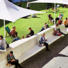 悉尼科技大學(xué)校園綠地是悉尼科技大學(xué)市中校區(qū)最為重要的公共開放空間。校園綠地的規(guī)劃是以具有強(qiáng)烈特色的概念設(shè)計(jì)分析為主導(dǎo),并體現(xiàn)在規(guī)劃和設(shè)計(jì)過程中所出現(xiàn)的每項(xiàng)設(shè)計(jì)改動(dòng)決策之中。為了呼應(yīng)當(dāng)年校園總體規(guī)劃的遠(yuǎn)景:打造出“吸引人停留的校園”,景觀設(shè)計(jì)工作室將場(chǎng)地劃分為三部分:中心綠地、中心廣場(chǎng)和愜意花園。每個(gè)部分的位置選址都經(jīng)過了精心的安排,全面考慮了場(chǎng)地朝向、光照、流線、場(chǎng)地功能用途及周邊建筑開發(fā)計(jì)劃情況。