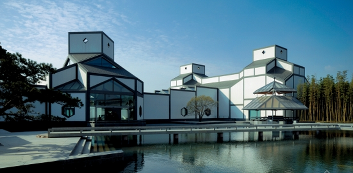 蘇州博物館新館的建筑面積約為19,000㎡,建筑按東、西、中3條軸線布置;中間部分是入口庭院、大廳和主庭院;西側為主展區和視聽室,用以展覽蘇州本地出土的文物;東側是現代藝術館、教育設施、商業服務,以及后勤管理部分等。由于位于保護區內,對建筑的高度需要有嚴格控制,所以博物館新館主體為一層,檐口高度都控制在6m以下。為了滿足展覽面積的需要,一部分展廳被設在地下一層。新館建筑采用院落式布局,其空間結構與比鄰的忠王府、拙政園渾然一體。東側部分由于直接和忠王府并列,其空間形態更接近傳統院落形式;相比之下,西側和中部兩組建筑就處理得靈活了很多,除建筑局部為兩層外,建筑形式呈現出中西合璧的影子。