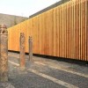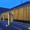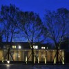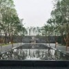揚州萬科西湖九曲會所景觀是由張唐景觀事務所設計。揚州萬科西湖九曲會所景觀以入口庭院為主。黑色花崗巖倒影水池兩旁配植雙排小葉紫薇和白蠟,水池結束在灰色石墻為背景的黃山石。會所建筑與水池之間以木頭屏風隔斷,條形的礫石鋪裝上散立著暗喻中國古代文化的拴馬樁。