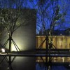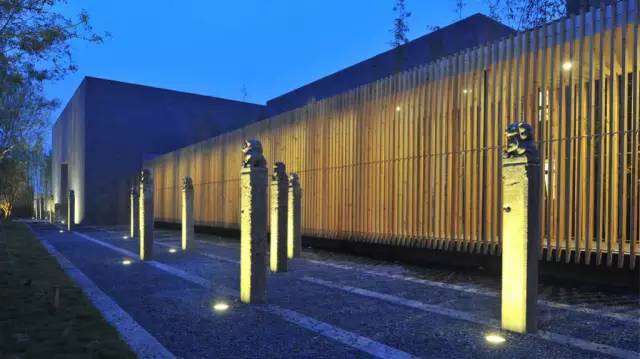 揚州萬科西湖九曲會所景觀是由張唐景觀事務所設計。揚州萬科西湖九曲會所景觀以入口庭院為主。黑色花崗巖倒影水池兩旁配植雙排小葉紫薇和白蠟,水池結束在灰色石墻為背景的黃山石。會所建筑與水池之間以木頭屏風隔斷,條形的礫石鋪裝上散立著暗喻中國古代文化的拴馬樁。