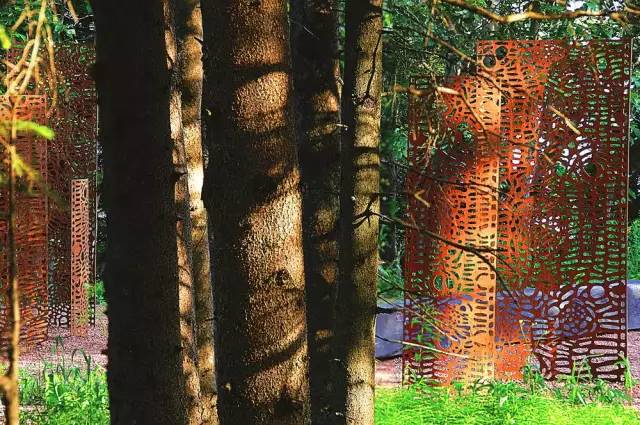 這個(gè)獨(dú)特的景觀項(xiàng)目設(shè)計(jì)的目的是呈現(xiàn)澳大利亞的本土景觀以及桉樹獨(dú)特、神秘的特質(zhì)。桉樹沿金屬板栽種成帶狀布局。這種單一的模式表現(xiàn)的是桉樹的地方特色;復(fù)雜的葉子形狀說明他們都是沿短暫存在的水源生存的機(jī)會(huì)主義者;種類繁復(fù)的桉樹也有著豐富多種的色彩、紋理和形態(tài)。置于地面上形態(tài)各異的桉樹干葉起到了裝飾的作用,隱藏在內(nèi)的桉樹油則散發(fā)出迷人的香味,使人愉悅。
