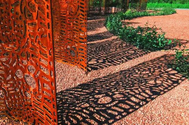 這個獨特的景觀項目設計的目的是呈現澳大利亞的本土景觀以及桉樹獨特、神秘的特質。桉樹沿金屬板栽種成帶狀布局。這種單一的模式表現的是桉樹的地方特色;復雜的葉子形狀說明他們都是沿短暫存在的水源生存的機會主義者;種類繁復的桉樹也有著豐富多種的色彩、紋理和形態。置于地面上形態各異的桉樹干葉起到了裝飾的作用,隱藏在內的桉樹油則散發出迷人的香味,使人愉悅。