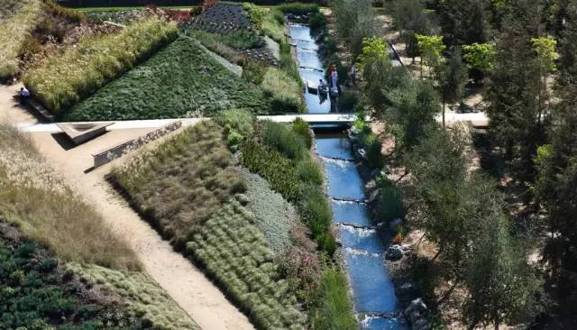 美國加利福尼亞 Playa Vista 中央公園位于洛杉磯國際機場北部,由OJB負責景觀設計。受傳統歐洲花園的啟發,并作為傳統企業廣場的替代品,Playa Vista中心公園被設計為一個向公眾開放的娛樂、運動及休閑場所,公園有茂盛的樹林、流水、各種運動場地和兒童娛樂區,公園中心是一個殼形草地圓形劇場。