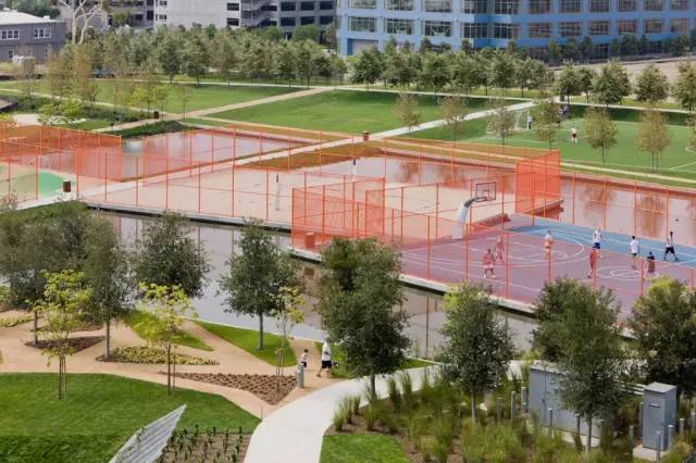 美國加利福尼亞 Playa Vista 中央公園位于洛杉磯國際機(jī)場北部,由OJB負(fù)責(zé)景觀設(shè)計(jì)。受傳統(tǒng)歐洲花園的啟發(fā),并作為傳統(tǒng)企業(yè)廣場的替代品,Playa Vista中心公園被設(shè)計(jì)為一個(gè)向公眾開放的娛樂、運(yùn)動(dòng)及休閑場所,公園有茂盛的樹林、流水、各種運(yùn)動(dòng)場地和兒童娛樂區(qū),公園中心是一個(gè)殼形草地圓形劇場。