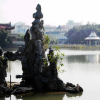 堆疊假山和建造房屋一樣,必須先做基礎(chǔ),即所謂的“立基”。首先按照預(yù)定設(shè)計的范圍,開溝打樁。基腳的面積和深淺,則由假山山形的大小和輕重來決定。計成在《園冶》“立基”條中說:“假山之基,約大半在水中立起。先量頂之高大,才定基之淺深。掇石須知占天,圍土必然占地。最忌居中,便宜散漫。”所以園林假山的堆疊必須從設(shè)計出發(fā),做到胸有成竹,意在筆先,先確定假山基礎(chǔ)的位置、外形和深淺等,否則當(dāng)假山的基礎(chǔ)已出地面,再想改變假山的整體形狀,增加高度或體量,就很困難了。一般假山基礎(chǔ)的開挖深度,以能承載假山的整體重量而不至于下沉,并且能在久遠(yuǎn)的年代里不變形的要求為原則。同時也必須做到假山工程造價較低而施工簡易的要求。 假山工程的基礎(chǔ)可分為陸地和涉水兩種,在做法上又有樁基、灰土基礎(chǔ)和混凝土基礎(chǔ)之分。樁基這是一種最古老的假山基礎(chǔ)做法,《園冶·掇山》說:“掇山之始,樁木為先,較其短長,察乎虛實(shí)。”尤其是水中的假山或假山駁岸,用得較為廣泛。其原理是將樁柱的底頭打到能接觸到水下或弱土層下的硬土層,以形成一個人工加強(qiáng)的支撐層,樁柱在假山基礎(chǔ)范圍內(nèi)均勻分布,這種樁稱為“支撐樁”。平面布置按梅花形排列的則稱“梅花樁”;用以擠實(shí)土壤,以加強(qiáng)土壤承載力的,則稱之為“摩擦樁”。樁柱通常多選用柏木或杉木,以取其通直而較耐水濕。樁粗一般在10~15厘米左右,樁長一般在100厘米以上至150厘米以上不等。如做駁岸,少則三排,多則五排,排與排之間的間距一般在20厘米左右。在蘇州古典園林中,凡有水際駁岸的假山基礎(chǔ),大多用杉木樁,如拙政園水邊假山駁岸的杉木樁長約150厘米;而北方則多用柏木樁,如北京頤和園的柏木樁長約160~200厘米。樁木頂端露出湖底十幾厘米至幾十厘米,其間用塊石嵌緊,再用花崗巖條石壓頂。條石上面再用毛石和自然形態(tài)的假山石,即《園冶·掇山》所云:“立根鋪以粗石,大塊滿蓋樁頭”。條石和毛石應(yīng)置于最低水位線以下,自然形態(tài)的假山石的下部亦應(yīng)在水位線以下,這樣不僅美觀,也可減少樁木的腐爛,所以有的樁木能逾百年而不壞。 除了木樁之外,也有用鋼筋混凝土樁的。由于我國各地的氣候條件和土壤情況各不相同,所以有的地方,如揚(yáng)州地區(qū)為長江邊的沖積砂層土壤,土壤空隙較多,通氣較多,加之土壤潮濕,木樁容易腐爛,所以傳統(tǒng)上還采用“填充樁”的方法。所謂填充樁,就是用木樁或鋼桿打樁到一定的深度,將其拔出,然而在樁孔中填入生石灰塊,再加水搗實(shí),其凝固后便會有足夠的承載力,這種方法稱為“灰樁”;如用碎瓦礫來充填樁孔,則稱為“瓦礫樁”。其樁的直徑約為20厘米,樁長一般在60~100厘米,樁邊的距離為50~70厘米。蘇州地區(qū)因其土壤粘性相對較強(qiáng),土為基礎(chǔ)方法,稱為“石釘樁”,再在縫隙中夾填碎石,上用碎磚片和素土夯實(shí),中間鋪以大石塊;若承重較大,則在夯實(shí)的基礎(chǔ)上置以條石。北京圓明園因處于低濕地帶,地下水成了破壞假山基礎(chǔ)的重要因素,包括土壤的凍脹對假山基礎(chǔ)的影響,所以其常用在樁基上面打灰土的方法,以有效地減少地下水對基礎(chǔ)的破壞。 灰土基礎(chǔ)某些北方地區(qū),因地下水位不高,雨季比較集中,這樣便使灰土基礎(chǔ)有個比較好的凝固條件。灰土一經(jīng)凝固,便不透水,可以減少土壤凍脹的破壞。所以在北京古典園林中,對位于陸地上的假山,多采用灰土基礎(chǔ)。灰土基礎(chǔ)的寬度一般要比假山底面的寬度寬出50厘米左右,即所謂的“寬打窄用”。灰槽的深度一般為50~60厘米。2米以下的假山,一般是打一步素土,再一步灰土。所謂的一步灰土,即布灰30厘米左右,踩實(shí)到15厘米左右后,再夯實(shí)至10厘米多的厚度。2~4米高的假山,用一步素土、兩步灰土。灰土基礎(chǔ)對石灰的要求,必須是選用新出窯的塊灰,并在現(xiàn)場潑水化灰,灰土的比例為3∶7,素土要求是顆粒細(xì)勻不摻雜質(zhì)的粘性土壤。 混凝土基礎(chǔ)近代假山一般多采用漿砌塊石或混凝土基礎(chǔ),這類基礎(chǔ)耐壓強(qiáng)度大,施工速度快。塊石基礎(chǔ)常用沒有造型和沒有多少利用價值的假山石,或花崗巖毛石、廢條石等筑砌,所以也稱毛石基礎(chǔ)。這種基礎(chǔ)適用于中小型假山。其基礎(chǔ)的厚度根據(jù)假山的體量而定,一般高在2米左右的假山,其厚度在40厘米左右;4米左右的假山,其厚度則在50厘米左右;毛石基礎(chǔ)的寬度應(yīng)比假山底部寬出30厘米以上。毛石需滿鋪鋪平,石塊之間相互咬合,搭配緊密,縫隙用碎石及150~200#的水泥砂漿或混凝土灌實(shí)作平,使它連成整體。堆疊大型假山則常采用鋼筋混凝土板基礎(chǔ),先需要挖土到設(shè)計所需的基礎(chǔ)深度,人工夯實(shí)底層素土,再用150~200#的混凝土做厚7~10厘米的墊層,然后再在上面用鋼筋扎成20厘米左右見方的網(wǎng)狀鋼筋網(wǎng),最后用混凝土澆注灌實(shí),經(jīng)一周左右的養(yǎng)護(hù)后,方可繼續(xù)施工。 在假山施工中還有“拉底”一說。所謂的拉底,就是在假山基礎(chǔ)上疊置最底層的自然假山石的術(shù)語,其正如《園冶·掇山》所說的:“方堆頑夯而起,漸以皴文而加。”選用頑夯的