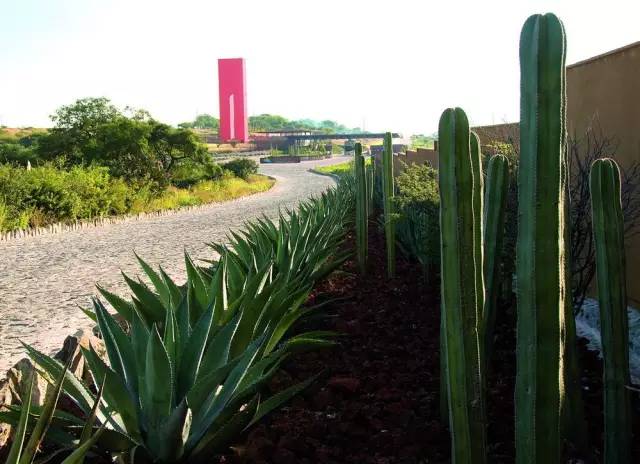 作為住宅開(kāi)發(fā)項(xiàng)目,Amanali鄉(xiāng)村俱樂(lè)部配有一個(gè)國(guó)際錦標(biāo)賽級(jí)18洞高爾夫球場(chǎng)和水上運(yùn)動(dòng)設(shè)施。其總體規(guī)劃的設(shè)計(jì)、景觀建筑和入口通道的各項(xiàng)建筑元素均由馬里奧·謝赫楠的工作室Grupode Diseño Urbano完成。設(shè)計(jì)師極力將規(guī)整式風(fēng)格的廣場(chǎng)、標(biāo)志性碑塔和接待廳整合進(jìn)天然的半沙漠景觀和鄉(xiāng)村中心地理位置的特色。主體元素是街道鋪筑期間開(kāi)挖出的火山巖,可以直接從所在場(chǎng)地獲取。植栽以絲狀或大葉龍舌蘭屬等荒漠植物為主,而風(fēng)琴管狀仙人掌正是從場(chǎng)地直接移栽的。四周的透明玻璃立面由細(xì)長(zhǎng)柱子圍合;樓宇的建筑風(fēng)格和擋土墻、輕型屋頂以及細(xì)長(zhǎng)柱子相映成趣??傓k公室和銷(xiāo)售大樓花園里的松散礫石是前西班牙時(shí)期的紅色火山巖,長(zhǎng)方形的木質(zhì)平臺(tái)在礫石的映襯下凸現(xiàn)綽約姿態(tài)。巨大的巖塊擋土墻構(gòu)架了小湖和山地景觀的廣闊視野。