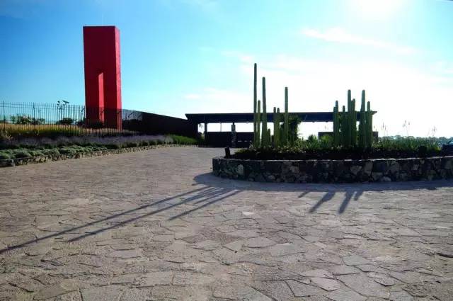 作為住宅開發項目,Amanali鄉村俱樂部配有一個國際錦標賽級18洞高爾夫球場和水上運動設施。其總體規劃的設計、景觀建筑和入口通道的各項建筑元素均由馬里奧·謝赫楠的工作室Grupode Diseño Urbano完成。設計師極力將規整式風格的廣場、標志性碑塔和接待廳整合進天然的半沙漠景觀和鄉村中心地理位置的特色。主體元素是街道鋪筑期間開挖出的火山巖,可以直接從所在場地獲取。植栽以絲狀或大葉龍舌蘭屬等荒漠植物為主,而風琴管狀仙人掌正是從場地直接移栽的。四周的透明玻璃立面由細長柱子圍合;樓宇的建筑風格和擋土墻、輕型屋頂以及細長柱子相映成趣。總辦公室和銷售大樓花園里的松散礫石是前西班牙時期的紅色火山巖,長方形的木質平臺在礫石的映襯下凸現綽約姿態。巨大的巖塊擋土墻構架了小湖和山地景觀的廣闊視野。