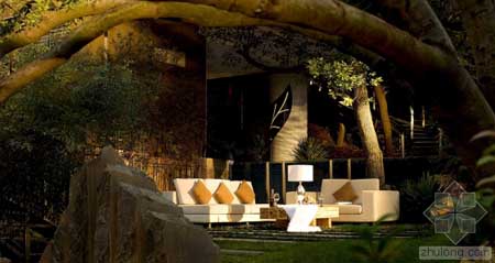 湘江一號項目位于西南面鄰湘江,北面靠道教七十二福地中的第二十二福地鵝羊山,交通便捷,占盡背山面水的格局。在自然生態的形態下,充分利用有利的自然條件和生態因素,以“鵝羊山”為骨,“湘江水”為血脈,構筑景觀山水格局,使與自然山水格局相統一,建筑適宜于自然,天人合一的宜居景觀。別墅庭院是依山勢而建的別墅,背山面水內含大宅之氣韻。建筑的入口客廳,入戶餐廳兩個功能區各有1個高差擋墻,雖然處理了場地高差但也成為場地制約因素。同時,樓梯橫置其間,使庭院空間及形態不甚理想。在景觀設計上巧妙地運用擋墻做了一輪滿月,并嵌入發光帶使得白天晚上自成一景,加上蒼勁的羅漢松,形成一幅“明月松間照,清泉石上流”的山水長卷,獨具幽靜閑逸意境,并形成多層次、多功能、序列完整的立體式花園空間。承接新月擋墻的是一方錦鯉魚池,錦鯉游弋,游出吉祥之意,渲染生活之氣息,帶出園林之福地。魚池以深色鋪裝為主,與白色豎墻形式形成較大的反差進一步加強視覺沖擊力,增強山水畫卷的神韻。明月下,置石、植松完美構圖之時點題呼應。主體畫卷作為主體結構后還有嵌草汀步的停車空間,畔山休息亭,現代的構成手法共同創造了現代而不失傳統的庭院環境,雅俗共賞,氣勢恢宏。在潛移默化之間,別墅庭院用中國元素傳遞了中國傳統園林文化,將傳統的中國式園林納入現代框架,賦予了庭院設計新的、旺盛的生命力和活力。