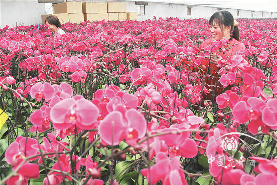 隨著新年臨近,江蘇省東海縣高新農業園區的‘紅太陽’、‘大辣椒’、‘彩霞’、‘彩云’和‘紅霞’等多個品種近30萬株蝴蝶蘭成為搶手貨,被京津冀、深滬廣等地花商訂購一空。