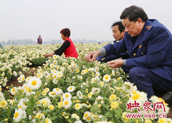 近日,河南省寶豐市肖旗鄉張伍莊村杭白菊花開得正濃。工商部門執法人員深入杭白菊種植基地主動聯系農村種植合作社,為企業提供市場信息服務和產品產地質量注冊,服務到田間地頭。