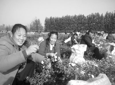 近日,內黃縣石盤屯鄉南街村農民在采摘杭白菊。今年,該村農民在政府引導下種植杭白菊120畝,預計創收40多萬元,成為農民增收致富的新門路。
