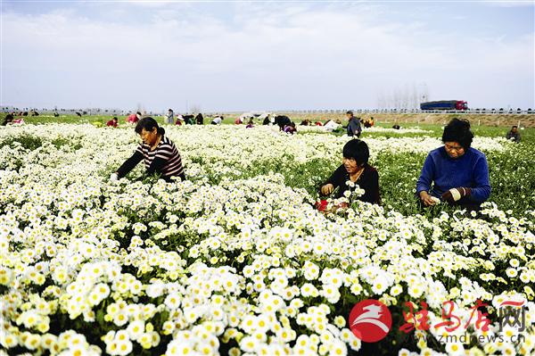 連日來,西平縣重渠鄉千畝菊花花海中,不少群眾正在忙碌地采摘菊花。當地太和華種植專業合作社今年5月流轉土地1198畝,種植藥用杭白菊花,并與全國幾家大型藥材市場簽訂采購合同,1000多畝地菊花產值900萬元左右。同時,該合作社以“公司+農戶”的形式,帶動周邊群眾共同種植,實現了雙贏致富。