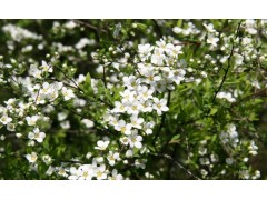 珍珠繡線菊(學名:Spiraea thunbergii Bl.):薔薇科、繡線菊屬灌木,高可達1.5米;枝條呈弧形彎曲細長開張,小枝有稜角,無毛;葉片線狀披針形,基部狹楔形,葉柄極短或近無柄,傘形花序無總梗,花3-7朵,基部簇生數枚小形葉片;萼筒鐘狀,萼片三角形或卵狀三角形,花瓣倒卵形或近圓形,白色;花盤圓環形,子房無毛或微被短柔毛,蓇葖果開張,4-5月開花,7月結果。