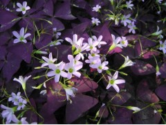 紫葉酢漿草植株整齊,葉色紫紅,紫紅色葉片美麗誘人,粉紅色花朵爛漫可愛。盆栽用來布置花壇,點綴景點,線條清晰,富有自然色感,是極好的盆栽和地被植物。可以作為林緣植物或大面積片植觀賞:紫葉酢漿草冠幅15-30厘米。