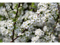 珍珠繡線菊(學名:Spiraea thunbergii Bl.):薔薇科、繡線菊屬灌木,高可達1.5米;枝條呈弧形彎曲細長開張,小枝有稜角,無毛;葉片線狀披針形,基部狹楔形,葉柄極短或近無柄,傘形花序無總梗,花3-7朵,基部簇生數枚小形葉片;萼筒鐘狀,萼片三角形或卵狀三角形,花瓣倒卵形或近圓形,白色;花盤圓環形,子房無毛或微被短柔毛,蓇葖果開張,4-5月開花,7月結果。