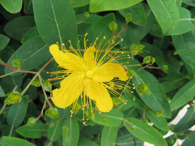 金絲桃和金絲梅是同科屬金絲桃科的植物,只是兩種不同品種,外觀極其相似,如果要說區別,那最明顯的區別就是金絲桃的花絲長,金絲梅的花絲短。