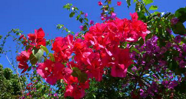 (1) 常曝曬:三角梅是喜高溫和強的植物,因此盆栽三角梅應始終放在陽光充足。這樣不僅對其營養生長有利,而且有利于生殖生長。經過強日照處理的植株,枝條節間短,生長充實,花量多,花色深,花期長。