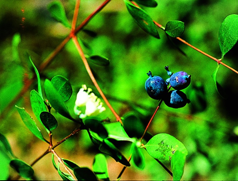 直立灌木,高1-2.5米;幼枝紅褐色,纖細,被短柔毛,老枝樹皮細條狀剝落。葉菱狀卵形至卵形,長1.5-2.5厘米,寬1.2-1.8厘米,頂端尖或鈍,基部楔形或?qū)捫ㄐ危墸厦婢G色,下面灰白色,兩面無毛,近基部三出脈,側(cè)脈不明顯;葉柄長1-2毫米。花小,無梗,單生于短小、鉆形苞片的腋內(nèi),組成一短小的頂生穗狀花序,下部的苞片葉狀且較長;萼筒長約2毫米,萼齒5枚,卵狀披針形,長約1毫米,頂急尖,無毛;花冠白色,鐘形,長5-7毫米,裂片卵形,稍短于筒,內(nèi)外兩面均無毛;雄蕊5枚,著生于花冠筒中部,與花冠等長或稍伸出,花藥白色,長2毫米;花柱長6-7毫米,無毛,柱頭頭狀。果實卵圓形,長7毫米,頂端有1小喙,藍黑色,具白霜;分核2枚,密生長柔毛。花期7-9月,果熟期9-11月。