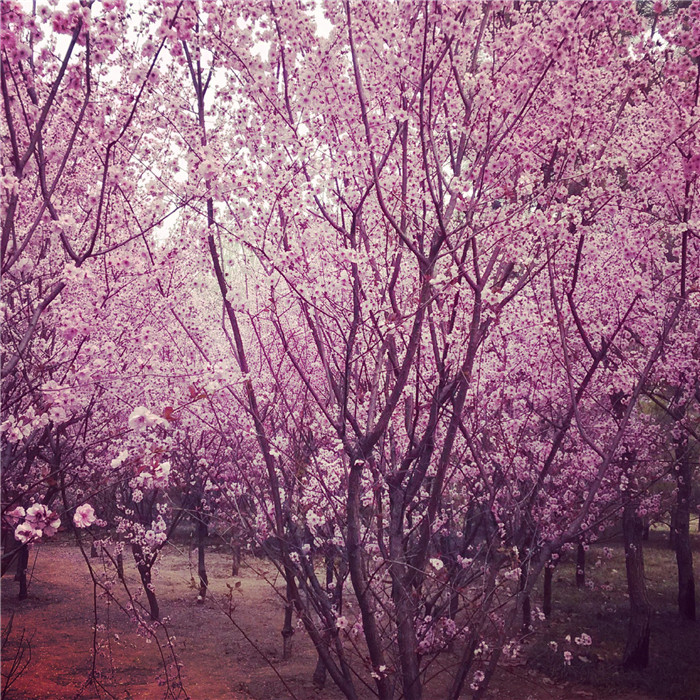 美人梅(學名:Prunus × blireana cv. Meiren):落葉小喬木或灌木,法國引進。由重瓣粉型梅花與紅葉李雜交而成。落葉小喬木。葉片卵圓形,長5~9厘米,葉柄長1-1.5厘米,葉緣有細鋸齒,葉被生有短柔毛,花色淺紫,重瓣花,先葉開放,萼筒寬鐘狀,萼片5枚,近圓形至扁圓,花瓣15-17枚,小瓣5-6梅,花梗1.5厘米,雄蕊多數,自然花期自3月第一朵花開以后,逐次自上而下陸續開放至4月中旬。紫紅色。花粉紅色,繁密,先花后葉。花期春季。喜陽光充足、通風良好、開闊的環境。要求土層深厚、排水良好、富含有機質的土壤。嫁接、壓條、扦插繁殖。優良的園林觀賞、環境綠化的樹種。