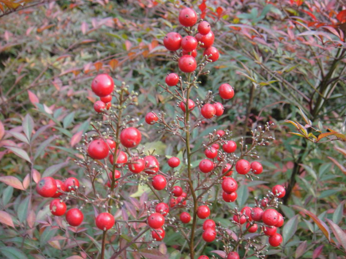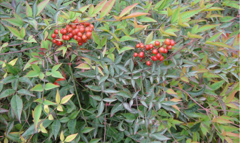 南天竹,又名南天竺,貴州俗稱野貓傘(學名:Nandina domestica),屬小檗科南天竹屬,原產于中國,是常綠植物,夏季開白花或粉紅色花,果紅色。其全株有毒。若誤食會產生全身興奮、脈搏不穩、血壓下降、肌肉痙攣、呼吸麻痹,意識模糊等癥狀。在日本,南天竹有消災解厄的意涵,是受歡迎的年花之一。