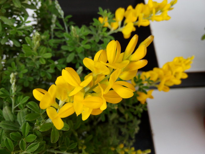 金雀兒屬物種(7張)總狀花序;萼2唇形,裂齒短;花冠黃色、白色或紫色;雄蕊單體,花藥異型;子房有胚珠多數(shù),花柱內(nèi)彎;莢果扁平,不開(kāi)裂,有種子數(shù)顆;種子基部有一硬痂體。
