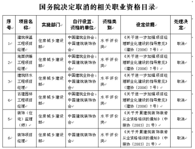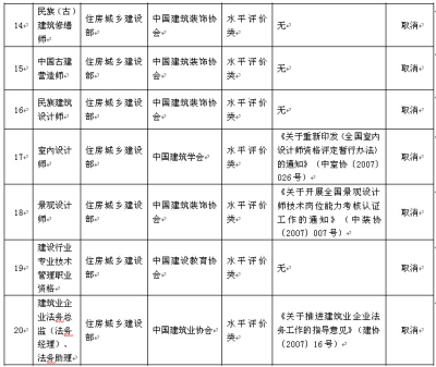 一、國務院決定取消的建筑保溫工程項目經理等22項職業資格(見附件),均為我部有關直屬單位、部管社團自行設置的、沒有法律法規依據的水平評價類職業資格。各相關單位要立即停止開展與這些職業資格相關的評價、認定、發證等工作,也不得以這些職業資格的名義開展培訓活動,或以其他方式變相開展與這些職業資格相關的活動。